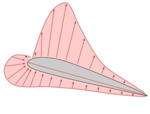 Kanadın üst kısmı kavisli olduğu için hava buradan hızlı akar. Hızlı hava, Bernoulli prensibine göre düşük basınç oluşturur. Bu düşük basınç, kanadın üstünde adeta bir vakum etkisi yaratır ve kanadı yukarı çeker. Kanadın lift kapasitesinin büyük çoğunluğu, bu düşük basınç bölgesinde meydana gelir.